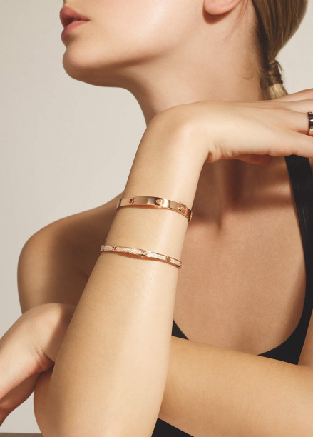 A play of shadow and light, ECLIPSE displays the planets’ different faces. The ECLIPSE collection is diverse and comes in two widths for both rings and bangles. Each piece be it in rose, yellow or white gold exists without diamonds, one diamond, one diamond in each motif or entirely studded with diamonds.