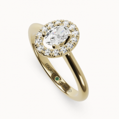 Create your C de Courbet Halo pavé set Oval-cut engagement ring in yellow gold