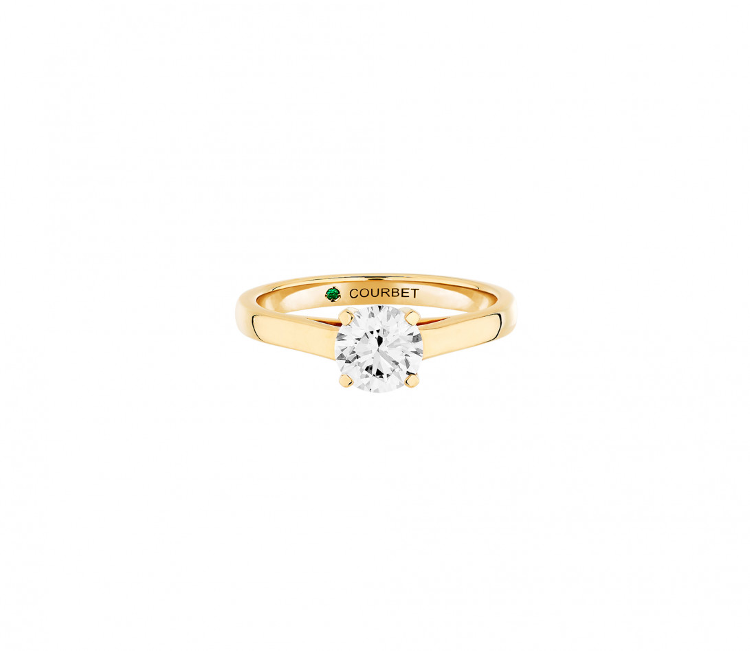 A lab-grown emerald is secretly hidden inside the ring. It represents the common ecological commitment between Courbet and the people wearing or those offering this creation. Lover of the stones and respectful of the Earth, Courbet is reinventing jewellery using lab-grown diamonds and gold recycled from industrial waste. This ring is filled with powerful symbols and values. It is an ecological alternative which preserves the beauty and magic of the universe.